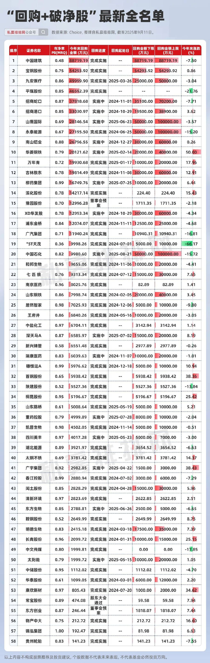 293只破净股中,今年来有回购的公司仅58家,其中已经完成回购的有40家公司,回购实施中的有14家,此外,回购方案还在董事会预案及刚刚股东大会通过的公司有3家。