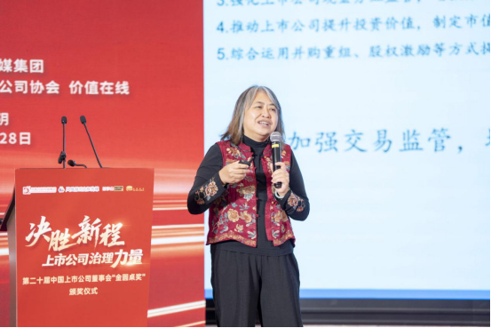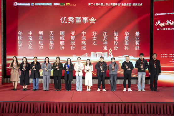 公司奖部分,佛燃能源、日照港、兴齐眼药、江南水务等来自能源、医药、交通、公用事业等领域的稳健力量凭借其治理结构完善、决策科学高效的董事会获得“优秀董事会”奖。南网科技、盐津铺子、恺英网络、平安银行等企业,因其在党建与公司治理融合、数字化转型、可持续发展等方面进行了卓有成效探索,获得“公司治理特别贡献奖”。“董事会价值创造奖”重点关注董事会战略引领下为公司和股东创造卓越价值的能力。招商公路、内蒙一机、龙版传媒、三维化学等一批在各自领域内通过精准战略和高效执行,显著提升企业内在价值和市场表现的上市公司成功入选。