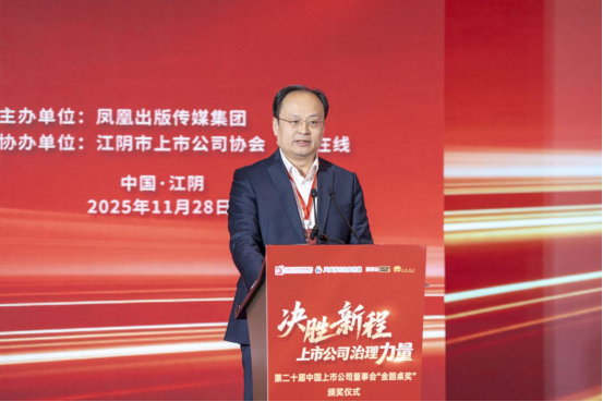 2025年11月28日,由凤凰出版传媒集团《董事会》杂志主办的第二十届中国上市公司董事会'金圆桌奖'颁奖仪式在江阴城隆重举行。凤凰出版传媒集团总经理李贞强,中国船舶股份董事、总经理施卫东,江阴市人民政府副市长季震,江南水务董事长华峰,建设银行无锡分行党委书记、行长陈峰,南京大学教授周凯,凤凰报刊社社长、《董事会》杂志总编辑葛云,凤凰报刊社副社长成晟以及来自全国各地的上市公司高管,专家学者,媒体代表、多地上市公司协会负责人共计200余位嘉宾齐聚一堂,共同探讨公司治理新路径,见证优秀企业与董事会的荣誉时刻。