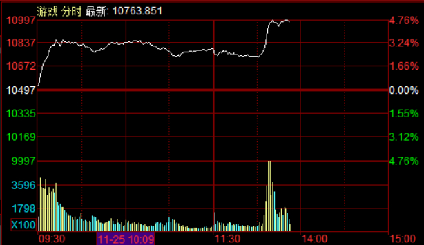 11月25日,游戏股盘中异动拉升,截至发稿,板块指数涨超4%。