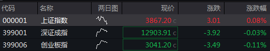 上证指数高开0.08%,深成指跌0.03%,创业板指跌0.11%。