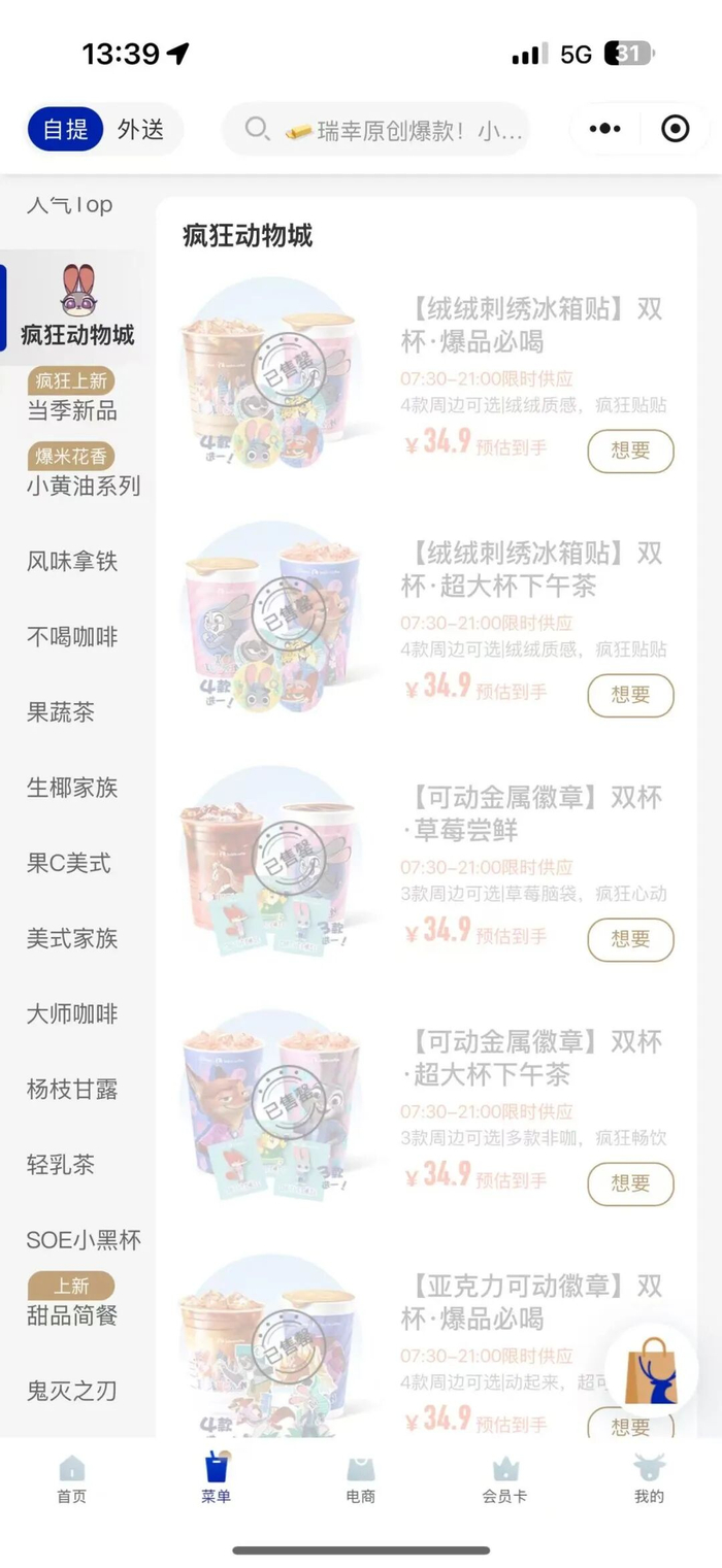 广州市天河区某核心商圈附近的瑞幸咖啡门店,门口还展示着与《疯狂动物城2》联名的产品海报,但等进到店内后,记者便发现,含定制周边的联名产品套餐早已售空,就连IP联名单品的配套定制纸杯都已没了库存。半小时内,源源不断有几波客流入店咨询是否还有《疯狂动物城2》联名的纪念品和纸杯。“暂时没有更多的补货通知,应该就在这几天里联名会结束,接下来会有别的合作。”门店工作人员告诉第一财经记者,瑞幸咖啡与《疯狂动物城2》的联名合作早在十几天前便开始了,联名周边也很早就没有了。