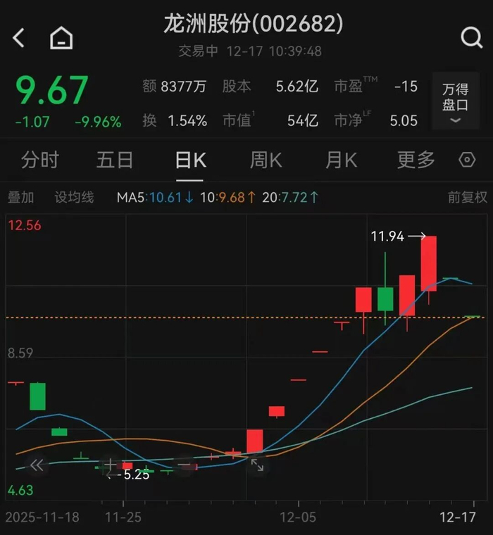 12月17日,商业航天概念股大幅走低,前期大涨的龙洲股份连续两日跌停。