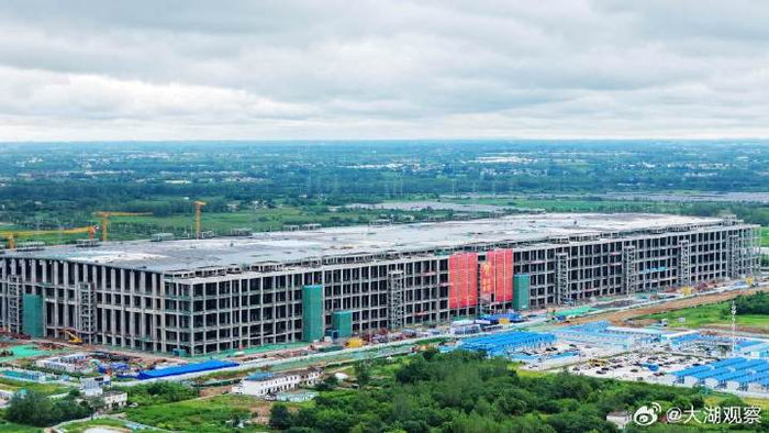 从高处俯瞰总投资550亿元的合肥国显8.6代AMOLED生产线主厂房正在施工。
