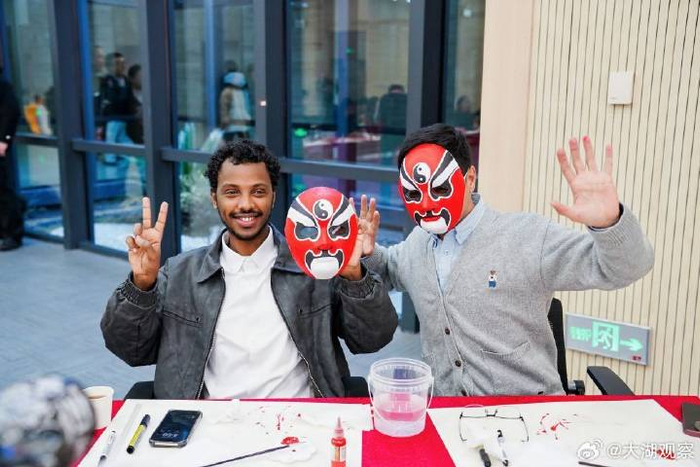 2月8日,“Interesting Weekend”第五期合肥人才沙龙上,外籍人士正在体验制作戏曲脸谱。