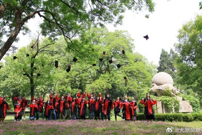 中国科学技术大学的毕业生在著名的“孺子牛”雕塑处拍摄毕业照