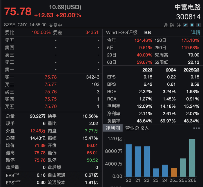 AI需求对国产算力产业链的带动作用仍在持续升温。wind数据显示,今年以来,中富电路涨幅已达134.5%,东材科技涨幅达147.5%,贤丰控股涨幅也达到131.3%。