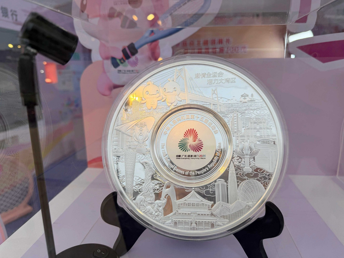 在全运会合作伙伴展位上,第一财经记者发现,本届全运会吉祥物IP也授权给合作伙伴来制作贵金属纪念商品。观众购买金银材质的纪念品后,就有机会得到吉祥物小玩具赠品。工作人员透露,这些为促销而额外赠送给顾客的吉祥物小玩具,目前在官方零售店应该已经断货了。