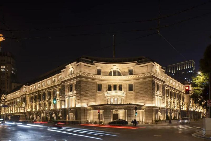 外滩非临江的界面被称作外滩第二立面,老市府大楼也位于外滩第二立面,去年,这里正式恢复了老市府大楼的名称。老市府大楼沿街四层的花岗石立面,很优雅也很舒展,也非常庄重,是远东地区最典型的英国新古典主义风格建筑。原设计是中轴对称的一个围合式街区。