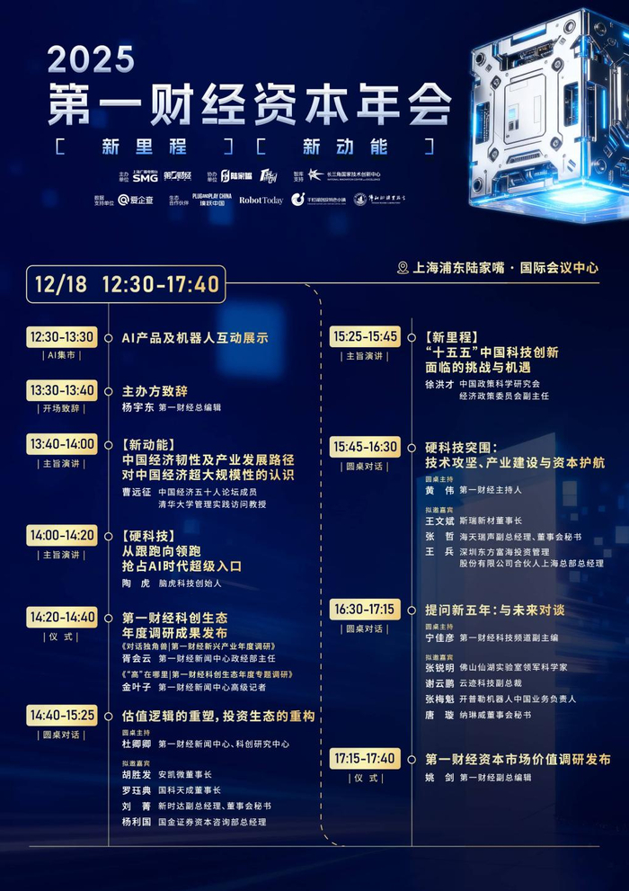 12月18日,上海陆家嘴,第一财经资本年会将以“新动能、新里程”为主题,聚焦新五年发展周期下的创新路径与产业跃迁,围绕核心议题展开深度研讨,为产业界、学术界、资本界搭建起跨界对话平台,共同推进资源的优化配置,凝聚产业共识,为推动经济持续向好贡献重要力量。