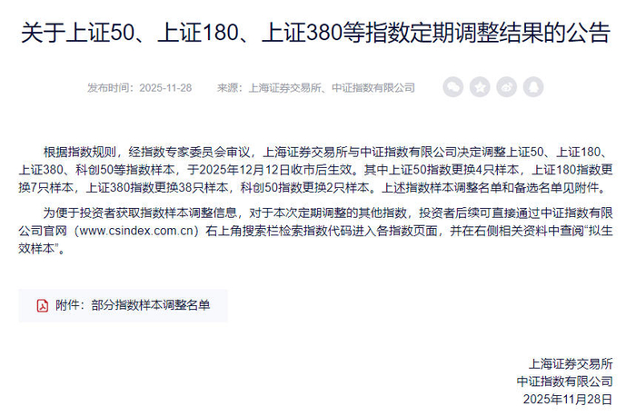 其中,上交所与中证指数的调整已于2025年12月12日收市后生效,而深交所及深证信息的调整则于12月15日正式实施。