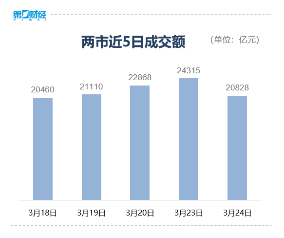 沪深两市成交额2.08万亿元。