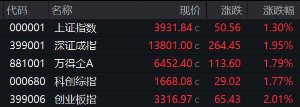 3月25日,A股四大指数集体收涨。沪指涨1.3%,深成指涨1.95%,创业板指涨2.01%,科创综指涨1.77%。