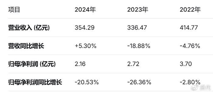 从业绩表现上看,整体规模较大,但利润有点承压。从近三年来看,公司营收规模保持在350亿元左右的高位,但净利润最高也只有3.7亿元,利润率只有1.06%。也就意味着,卖出了100块的东西,才赚1块出头。