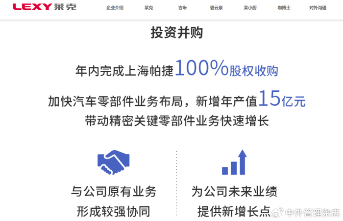 2021年12月2日,已经在上交所上市6年的莱克电气发布公告:上海帕捷汽车配件有限公司(包含其全资子公司昆山帕捷)已完成工商变更登记手续,莱克电气成为上海帕捷唯一股东。