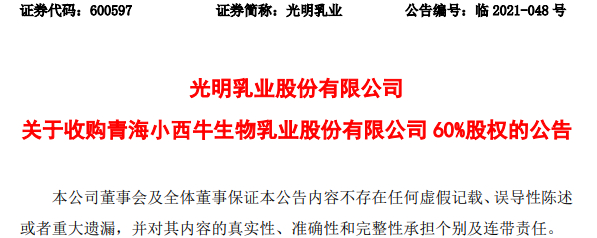 11月28日,光明乳业正式公告,拟以5亿元收购湖州福昕持有的小西牛公司40%股权。此次交易不构成关联交易和重大资产重组,已获董事会及战略委员会审议通过,无需提交股东大会。