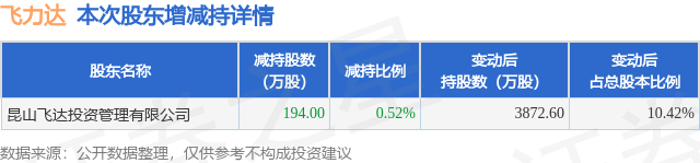 证券之星消息,9月2日飞力达发布公告《飞力达:关于控股股东减持计划实施完毕的公告》,其股东昆山飞达投资管理有限公司于2025年7月25日至2025年8月20日间合计减持194.0万股,占公司目前总股本的0.5221%,变动期间该股股价上涨0.93%,截止8月20日收盘报8.71元。