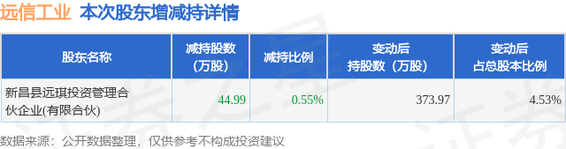 证券之星消息,9月5日远信工业发布公告《远信工业:关于实际控制人之一致行动人股份减持计划实施完成的公告》,其股东新昌县远琪投资管理合伙企业(有限合伙)于2025年9月1日至2025年9月4日间合计减持44.99万股,占公司目前总股本的0.5455%,变动期间该股股价上涨8.03%,截止9月4日收盘报39.0元。