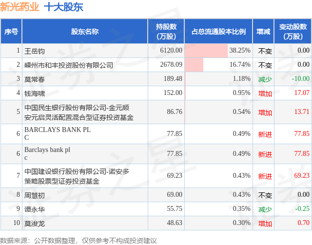 证券之星消息,9月17日新光药业发布公告《新光药业:关于公司持股5%以上股东股份减持计划届满的公告》,其股东嵊州市和丰投资股份有限公司于2025年9月16日合计减持36.1万股,占公司目前总股本的0.2256%,变动期间该股股价上涨0.61%,截止9月16日收盘报16.54元。