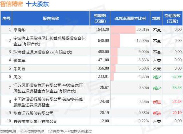 根据智信精密2025年中报公布的十大股东详情如下: