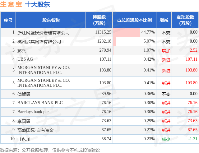 根据生意宝2025年中报公布的十大股东详情如下:
