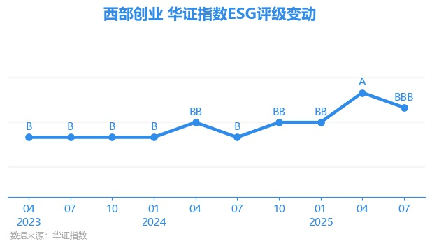 日前,华证指数公布了新一期(2025年7月31日)的ESG评级结果,西部创业(000557.SZ)获得BBB评级(华证指数评级为C起至AAA九档,C为最低档,AAA为其最高一级评级/AA为其第二档),上一期(2025年4月30日)ESG评级为A。本期ESG评级在22家地面运输行业A股上市公司中排名第1(上一期排名第2)。
