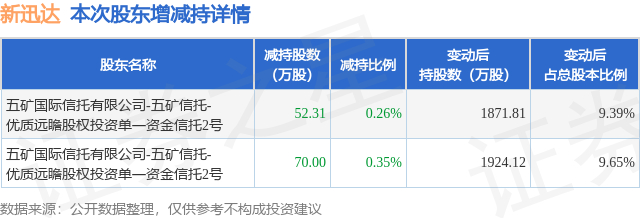 股东增减持详情见下表:
