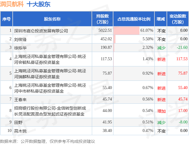 根据润贝航科2025年中报公布的十大股东详情如下: