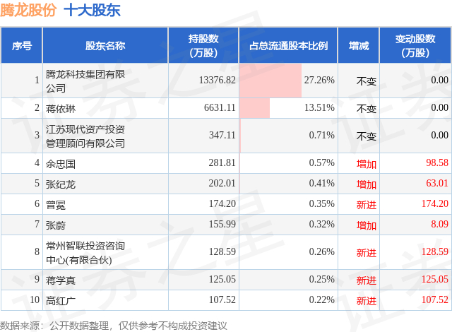 根据腾龙股份2025年中报公布的十大股东详情如下: