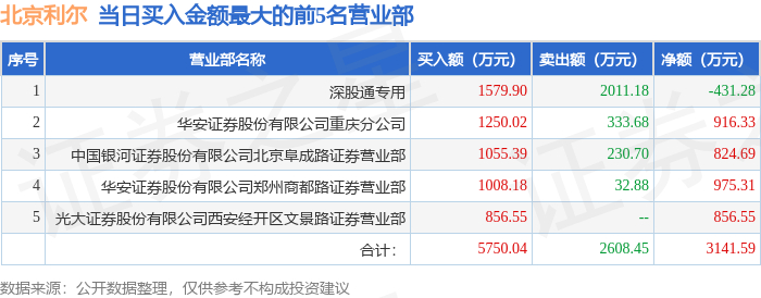从龙虎榜公布的当日买卖数据来看,北向资金合计净卖出431.28万元。