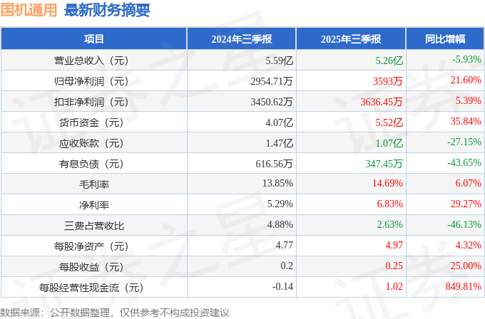 据证券之星公开数据整理,近期国机通用(600444)发布2025年三季报。截至本报告期末,公司营业总收入5.26亿元,同比下降5.93%,归母净利润3593.0万元,同比上升21.6%。按单季度数据看,第三季度营业总收入1.14亿元,同比下降31.72%,第三季度归母净利润386.62万元,同比下降46.73%。本报告期国机通用盈利能力上升,毛利率同比增幅6.07%,净利率同比增幅29.27%。