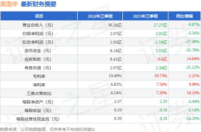 据证券之星公开数据整理,近期英洛华(000795)发布2025年三季报。截至本报告期末,公司营业总收入27.27亿元,同比下降9.87%,归母净利润2.01亿元,同比下降3.16%。按单季度数据看,第三季度营业总收入9.93亿元,同比上升0.07%,第三季度归母净利润5681.94万元,同比下降11.39%。本报告期英洛华公司应收账款体量较大,当期应收账款占最新年报归母净利润比达387.48%。