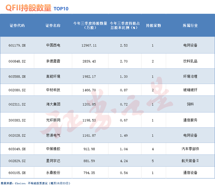 随着2025年上市公司三季报密集披露,外资QFII的最新持仓情况也浮出水面。据Choice数据显示,截至10月23日,已有近500家 A 股上市公司公布了 2025 年三季报,其中74家上市公司的前十大流通股东名单里出现了QFII的身影。