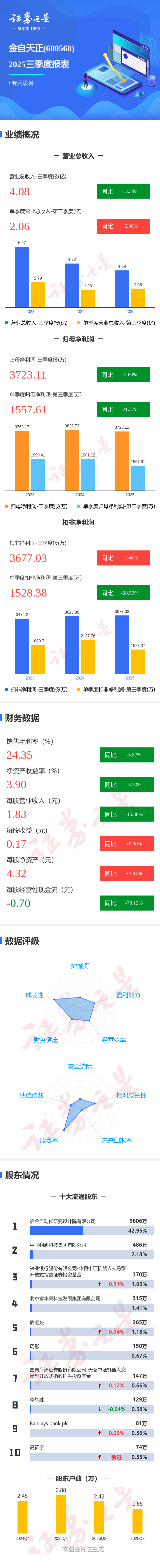 证券之星消息,金自天正2025年三季报显示,公司主营收入4.08亿元,同比下降15.38%;归母净利润3723.11万元,同比下降2.61%;扣非净利润3677.03万元,同比上升1.47%;其中2025年第三季度,公司单季度主营收入2.06亿元,同比上升6.31%;单季度归母净利润1557.61万元,同比下降21.38%;单季度扣非净利润1528.38万元,同比下降28.51%;负债率58.36%,投资收益-53.46万元,财务费用60.89万元,毛利率24.35%。