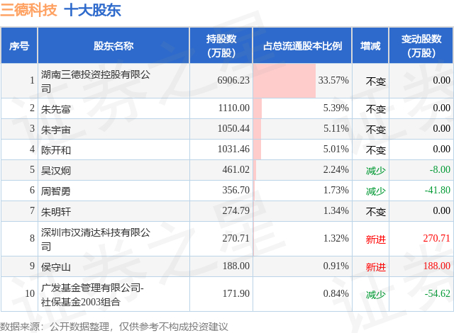 根据三德科技2025年三季报公布的十大股东详情如下: