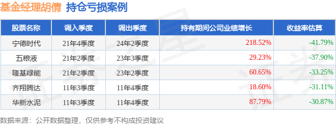 胡倩管理的海通量化价值精选一年持有混合A基金在21年4季度买入宁德时代,在持有2年又2个季度后在24年2季度卖出。持有期间的估算收益率为-41.79%,持有期间宁德时代在2021年到2024年的年报归属净利润增幅达218.52%。