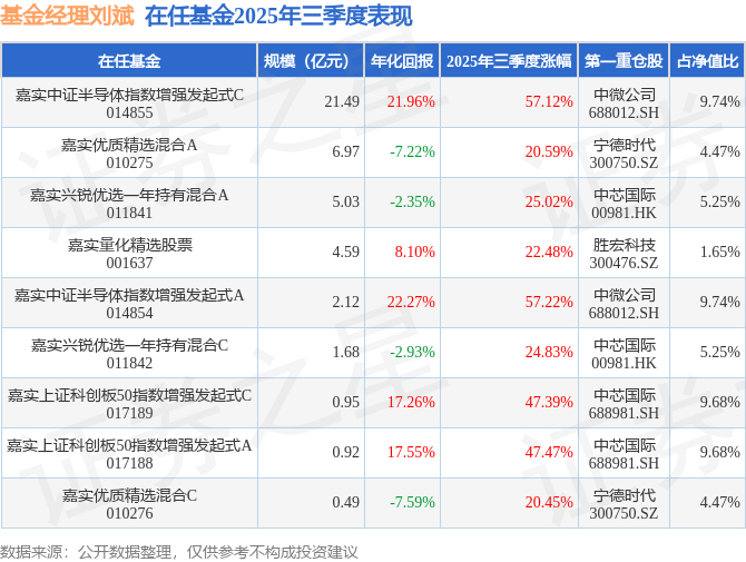 证券之星消息,截止2025年三季度末,基金经理刘斌旗下共管理9只基金,本季度表现最佳的为嘉实中证半导体指数增强发起式A(014854),季度净值涨57.22%。