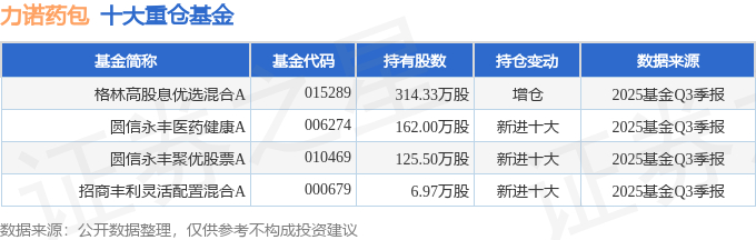 持有力诺药包最多的基金为格林高股息优选混合A,目前规模为1.36亿元,最新净值1.7885(10月27日),较上一交易日上涨1.35%,近一年上涨76.54%。该基金现任基金经理为刘赞。