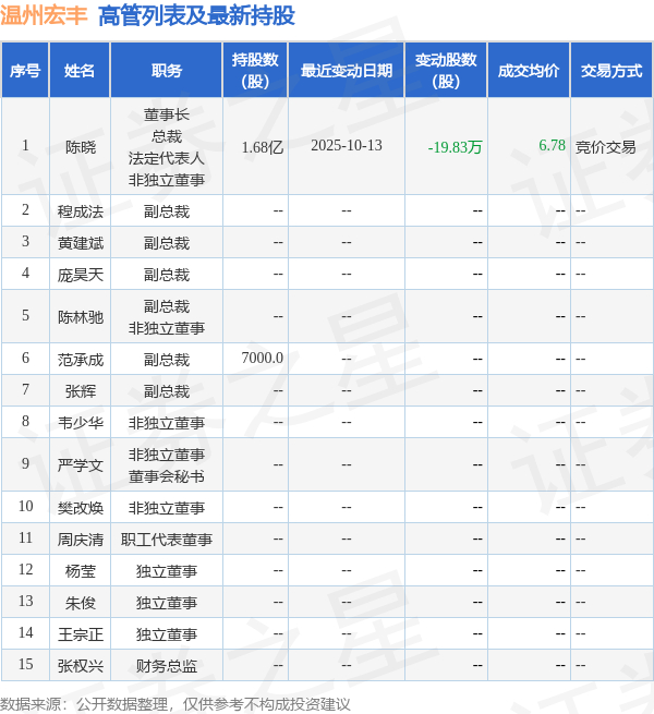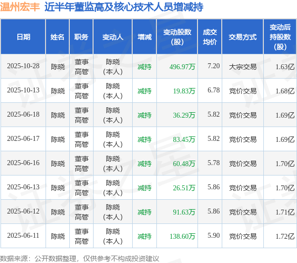 温州宏丰近半年内的董监高及核心技术人员增减持详情如下: