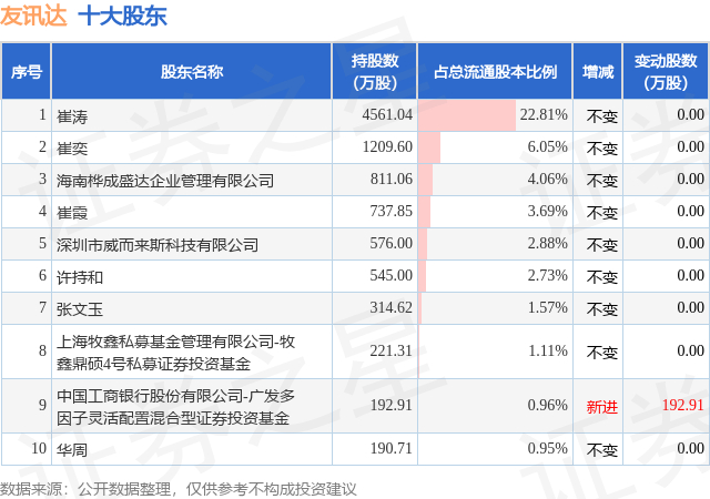 根据友讯达2025年三季报公布的十大股东详情如下: