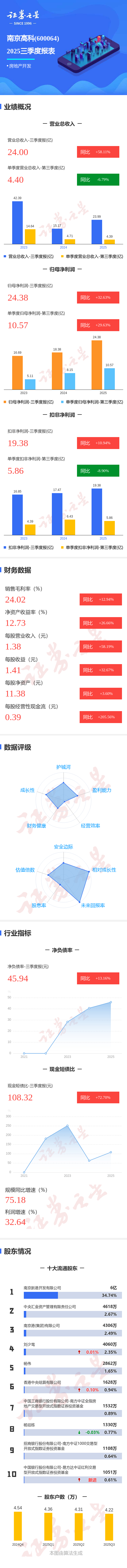 证券之星消息,南京高科2025年三季报显示,前三季度公司主营收入24.0亿元,同比上升58.11%;归母净利润24.38亿元,同比上升32.64%;扣非净利润19.38亿元,同比上升10.95%;其中2025年第三季度,公司单季度主营收入4.4亿元,同比下降6.8%;单季度归母净利润10.57亿元,同比上升29.64%;单季度扣非净利润5.86亿元,同比下降8.91%;负债率48.21%,投资收益18.84亿元,财务费用1.44亿元,毛利率24.02%。
