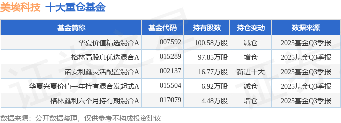 持有美埃科技最多的基金为华夏价值精选混合A,目前规模为9.64亿元,最新净值1.9115(10月31日),较上一交易日下跌0.5%,近一年上涨44.52%。该基金现任基金经理为朱熠。