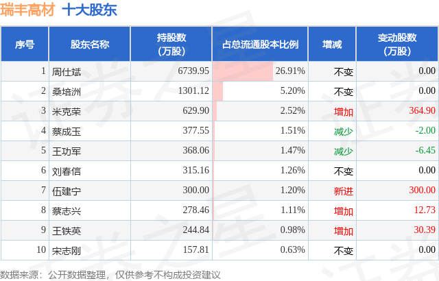 根据瑞丰高材2025年三季报公布的十大股东详情如下: