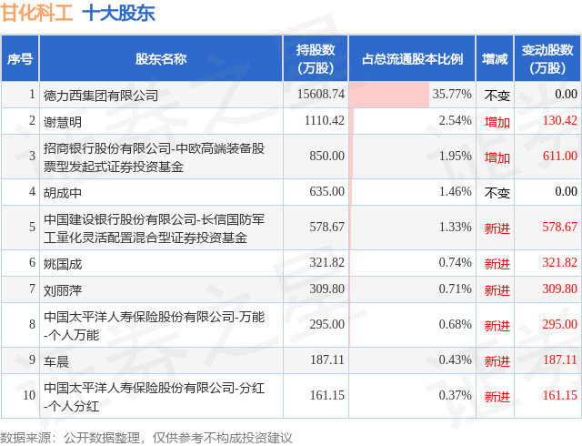 根据甘化科工2025年三季报公布的十大股东详情如下: