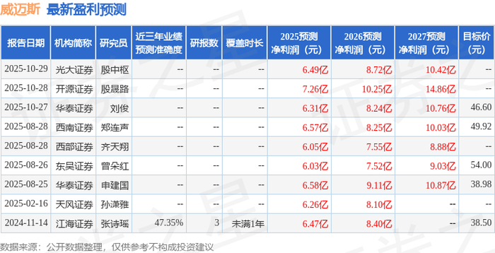 威迈斯2025年三季报显示,前三季度公司主营收入45.97亿元,同比上升5.45%;归母净利润4.25亿元,同比上升43.64%;扣非净利润3.97亿元,同比上升46.35%;其中2025年第三季度,公司单季度主营收入16.38亿元,同比上升3.06%;单季度归母净利润1.53亿元,同比上升90.49%;单季度扣非净利润1.44亿元,同比上升92.96%;负债率55.57%,投资收益1732.42万元,财务费用351.49万元,毛利率21.52%。
