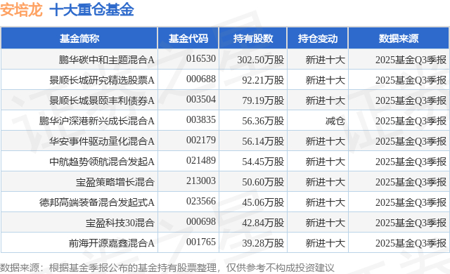 重仓安培龙的前十大公募基金请见下表: