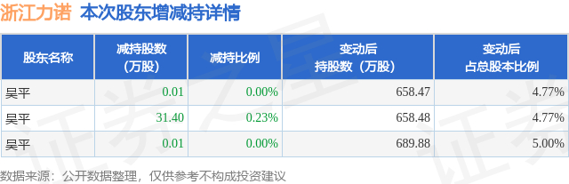 证券之星消息,11月10日浙江力诺发布公告《浙江力诺:关于原持股5%以上股东股份减持计划实施完成的公告》,其股东吴平于2025年11月5日至2025年11月7日间合计减持31.42万股,占公司目前总股本的0.2278%,变动期间该股股价上涨1.04%,截止11月7日收盘报15.61元。