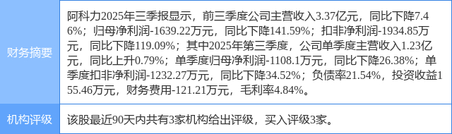 2025年10月27日,开源证券研究员金益腾,毕挥,李思佳发布了对阿科力的研报《公司信息更新报告:主业Q3量增价减承压运行,COC量产稳步推进》,该研报对阿科力给出“买入”评级。研报中预计公司2025-2027年归母净利润为0.05、0.44、1.39(前值0.21、1.05、2.54)亿元,对应EPS为0.05、0.45、1.42(前值0.23、1.19、2.89)元/股,当前股价对应PE为741.1、89.3、28.3倍。我们依然看好公司COC产业化后的广阔前景,维持“买入”评级。证券之星数据中心根据近三年发布的研报数据计算,该研报作者对此股的盈利预测准确度为44.34%。