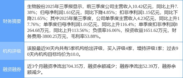 2025年8月25日,中航证券研究员彭海兰,陈翼发布了对生物股份的研报《非瘟疫苗领先,创新驱动成长》,该研报对生物股份给出“买入”评级。研报中预计公司2025-2027年归母净利润分别为1.61亿元、2.81亿元、4.06亿元,EPS分别为0.15元、0.25元、0.37元,对应25、26、27年PE分别为63.13 、36.30、25.07倍,维持“买入”评级。证券之星数据中心根据近三年发布的研报数据计算,该研报作者对此股的盈利预测准确度为39.39%。