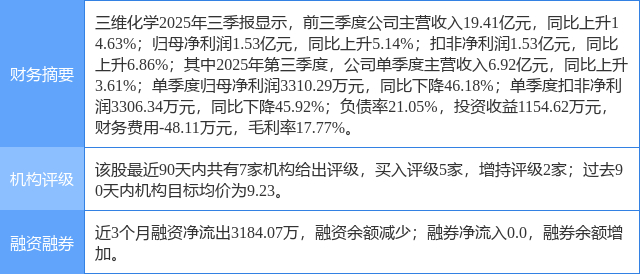 今日三维化学(002469)涨6.81%,收盘报9.26元。